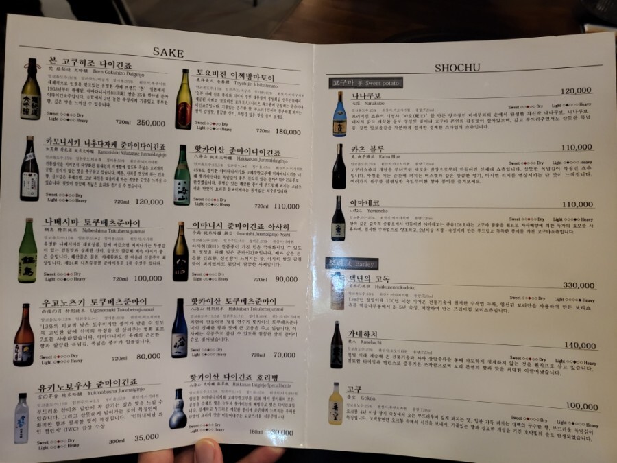 일본식 고기구이집 답게 사케의 종류가 다양히 보이는데요!
