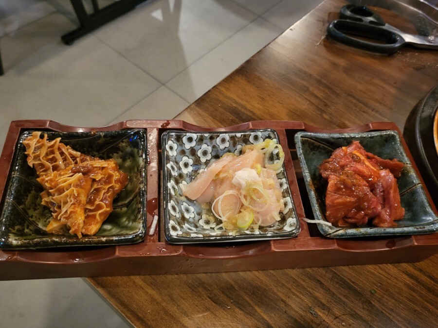 다음은 '야끼니꾸 3종모듬' 과 '소꼬리 구이'