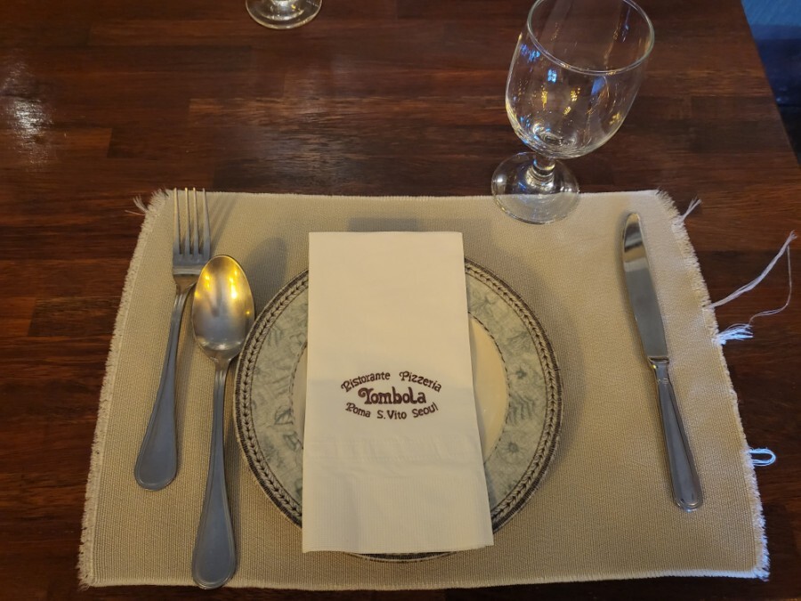 이런식으로 테이블에 식기들이 셋팅되어 있는 상태고 메뉴판이 나오더라구요!
