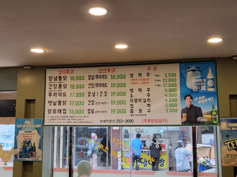 메뉴판 모습입니다! 통닭거리인 만큼 당연히 통닭을 팔고 있었고요!