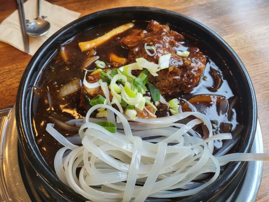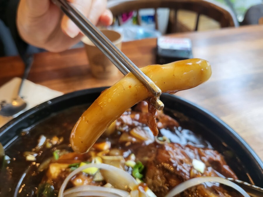 당면과 떡볶이 그리고 양파가 들어있는 뼈찜구성이더라구요~