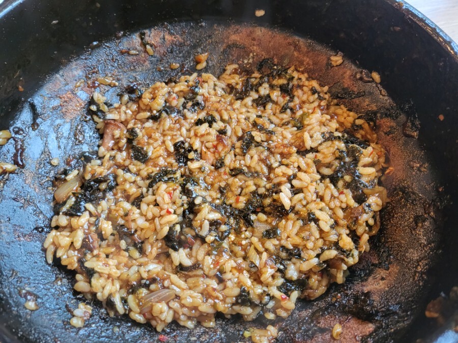 뼈찜양념과 김치 날치알, 김가루를 넣어서