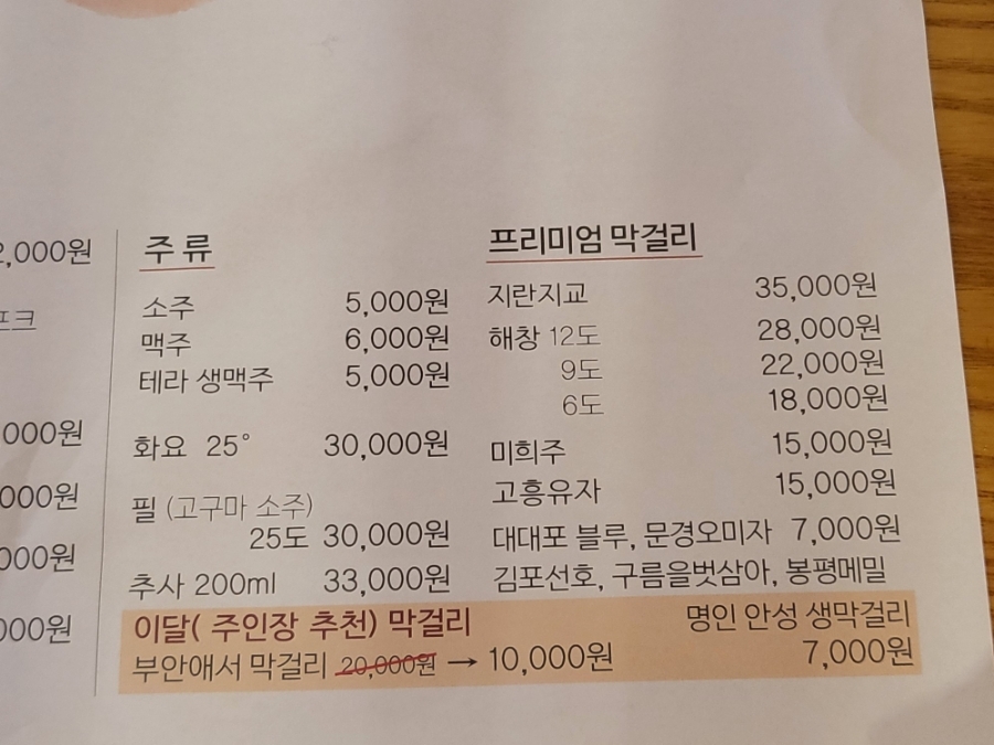 그날의 사정에따라 없는 막걸리도 있다고 하니