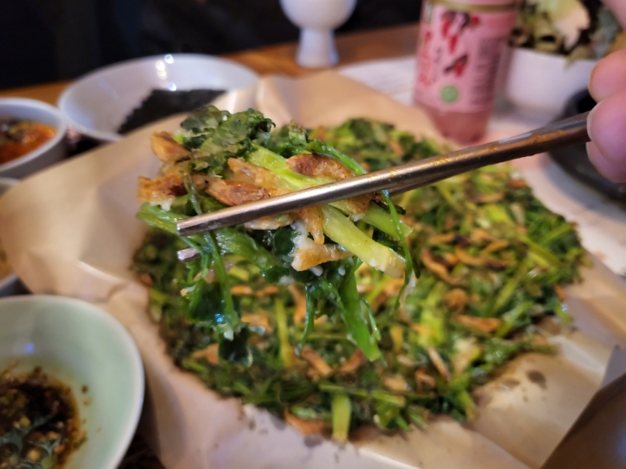 보리새우와 돌미나리가 듬뿍 들어간 음식