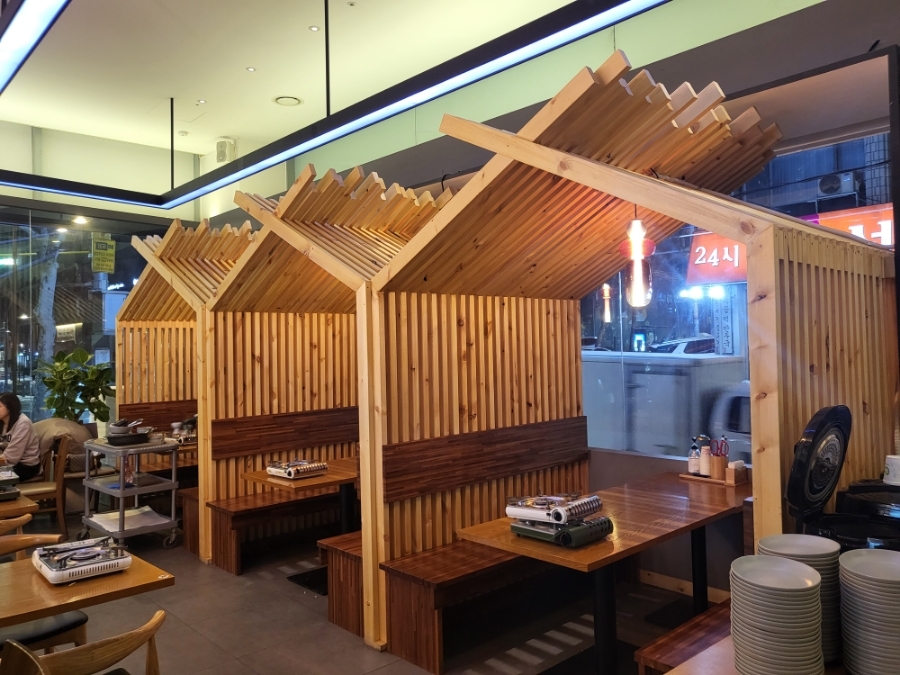 오른쪽은 집처럼 되어 있는 6인이상 착석 가능한
