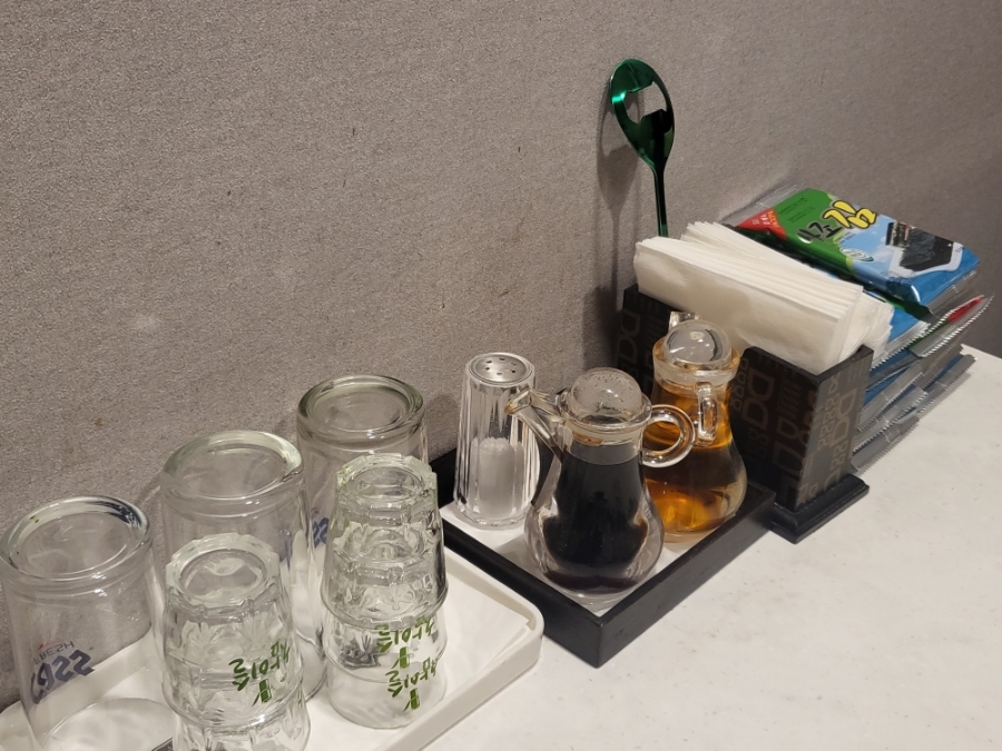 필요한 소스나 잔들은 테이블에 셋팅되어 있으니