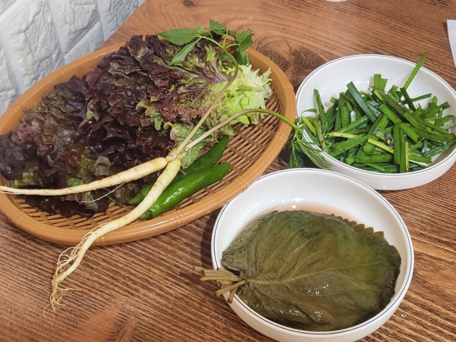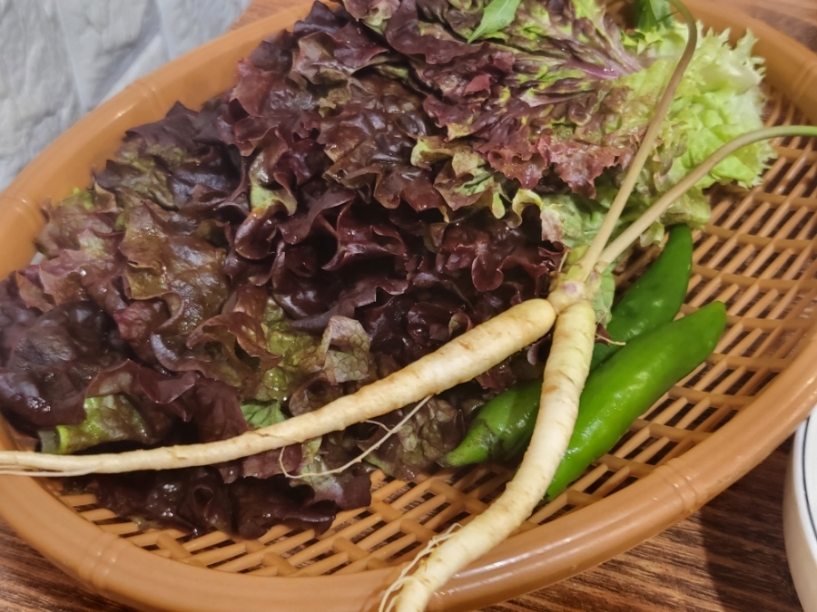 쌈채소와 고추, 장뇌삼이 같이 구성되었고