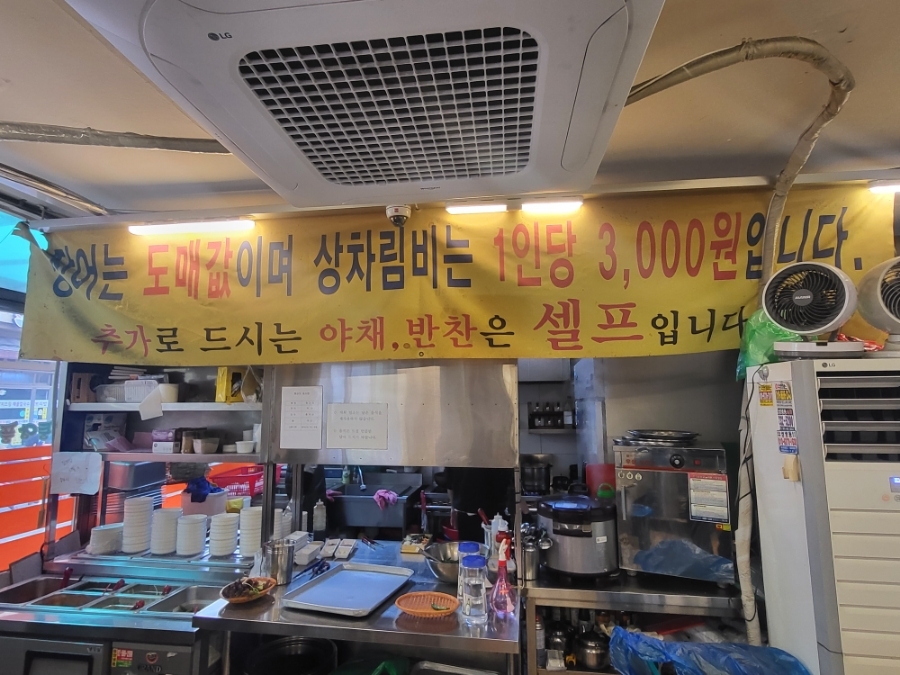 장어를 구입,판매 하고 있기에 기본 상차림비는 1인당 3,000원을