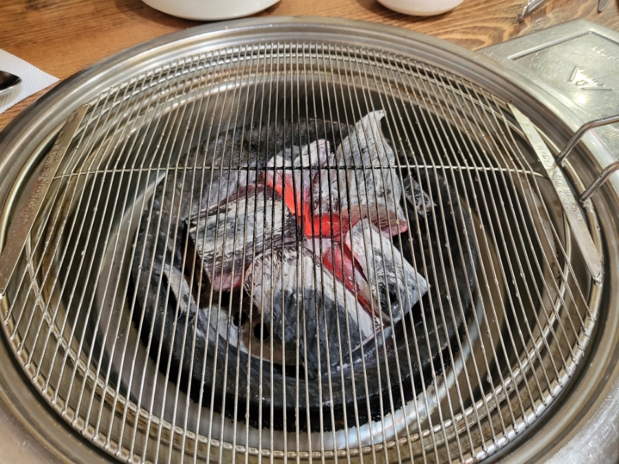 화로에 뜨거운 숯불이 준비되어져 나왔으니