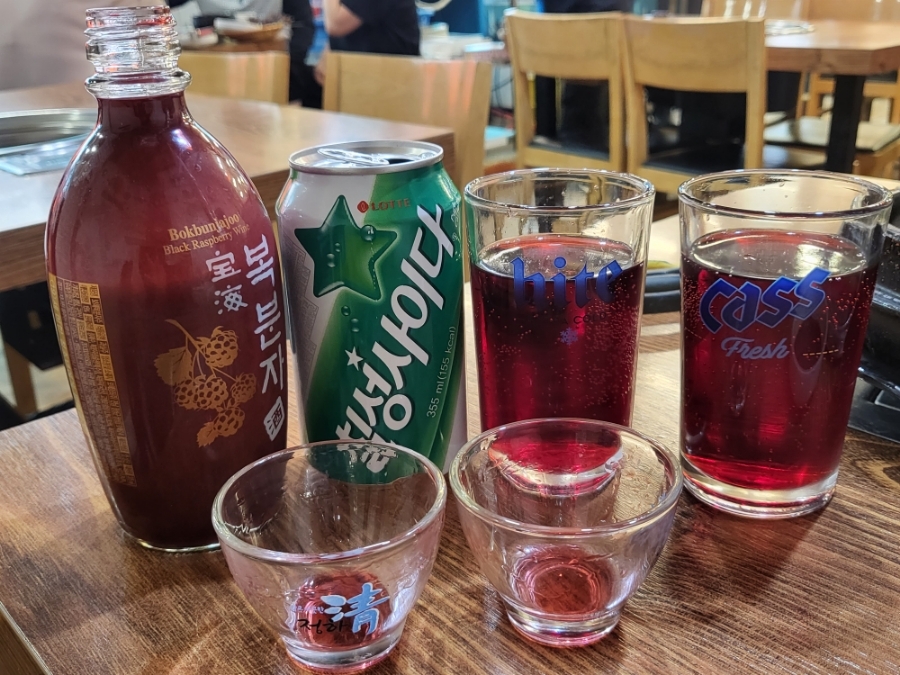 소맥을 먹을까 하다가 혹하고 주문한 복분자와 사이다 일명 '복사'