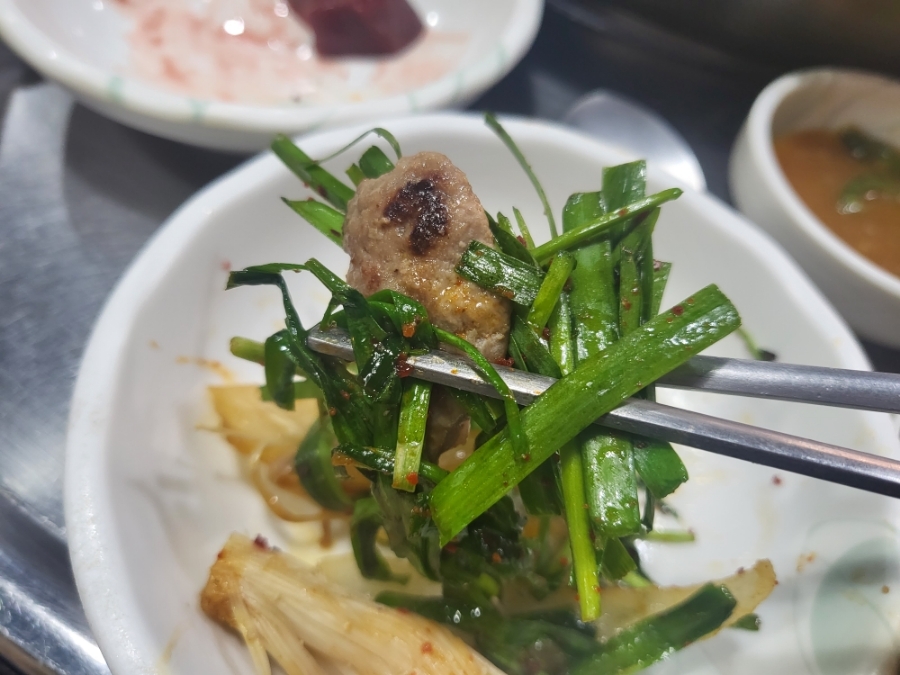 같이 나온 부추무침도 불판에 올려 같이 구워먹으면 좋다고 안내해 주셨고
