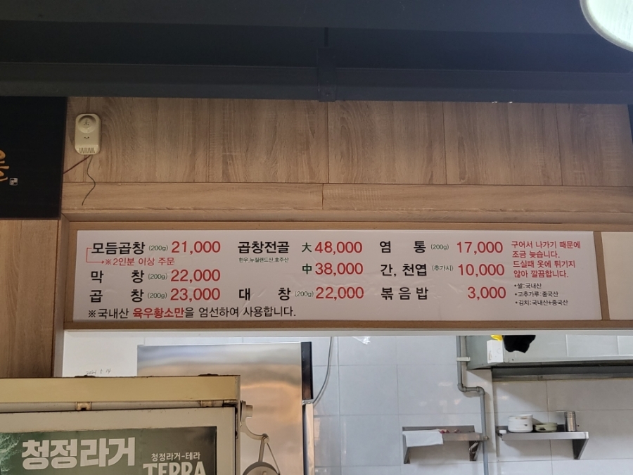 메뉴판은 정말 심플! 크게 곱창, 곱창전골로 구성되어 있었고