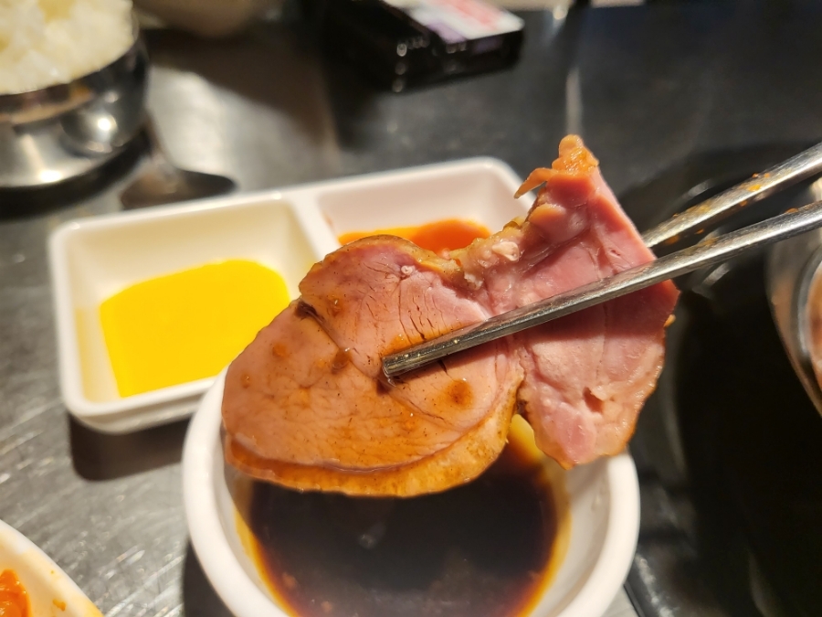 6가지 소스에 골라먹는 맛까지 있었던훈제오리,삼겹살 전문점(차돌라면 맛있다)