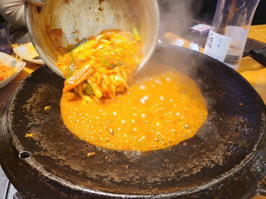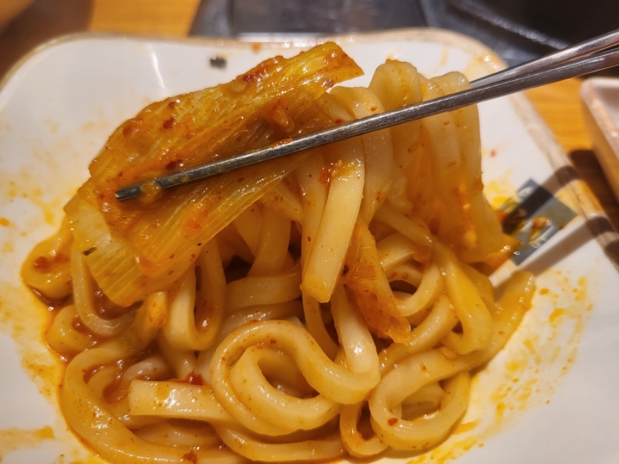 주방에서 이미 완성된 칼국수를 솥에 부워주는 시스템이었고 나오자마자 바로 먹으면 되서 너무 편했어요! 김치우동에 업그레이드 버전 볶음밥과 마찬가지로 심심하지 않고 진한맛이었고 생각보다