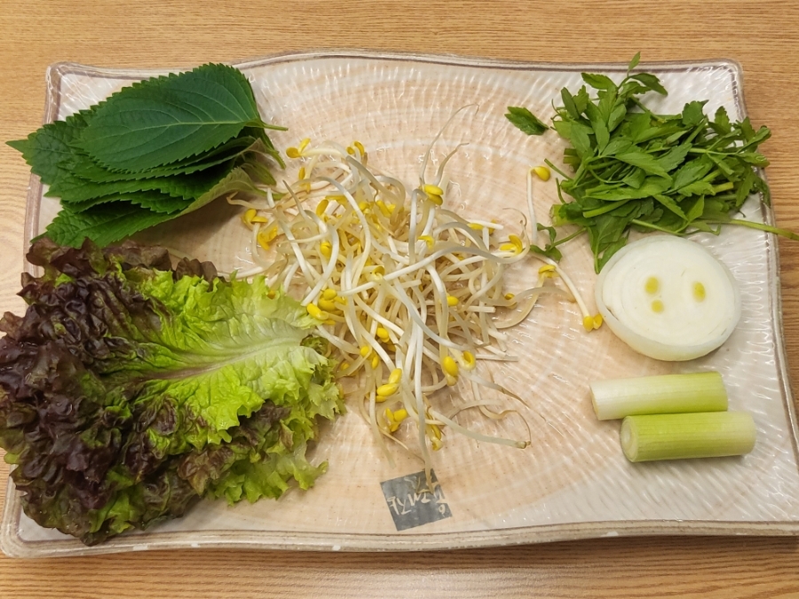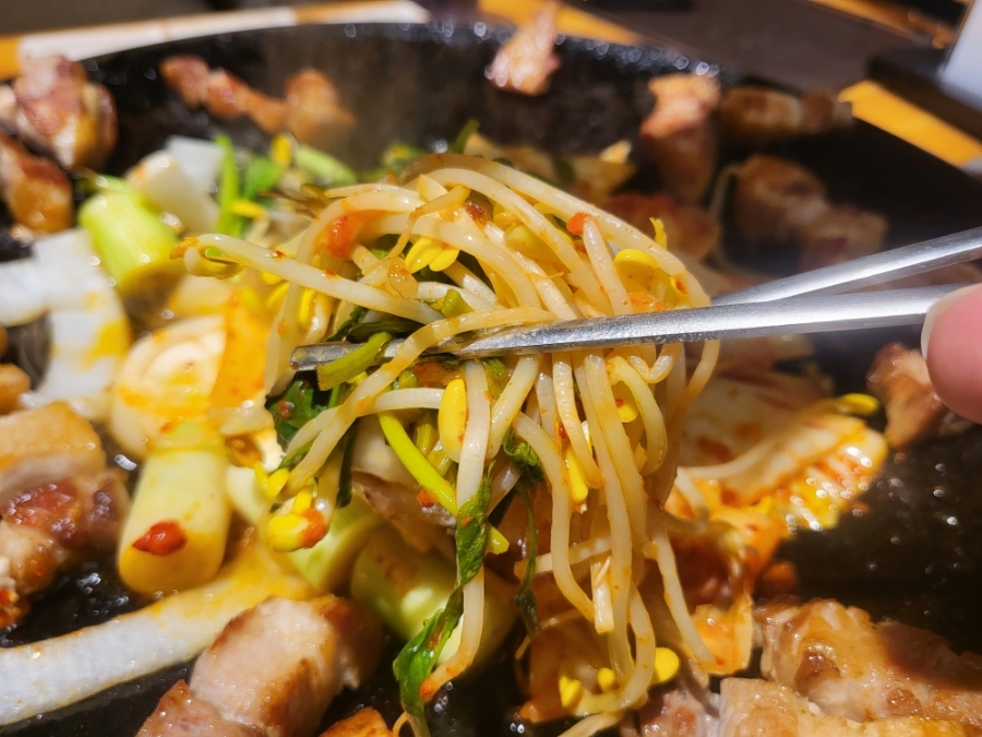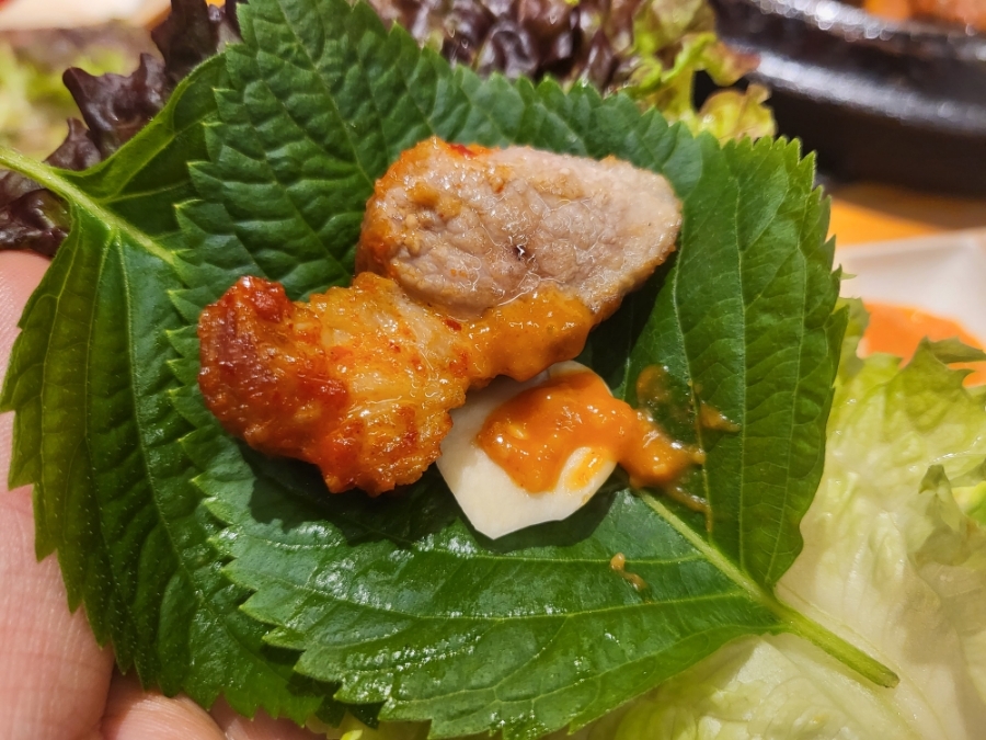 중앙에 굽는 김치와 각종야채랑 먹으면 내부인데도
