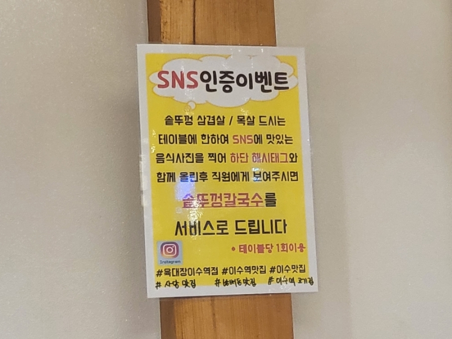 하시면 '솥뚜껑칼국수'가 서비스로 나간다고 하니 손해볼거 없으니 참여해보시는것도 좋을것 같아요