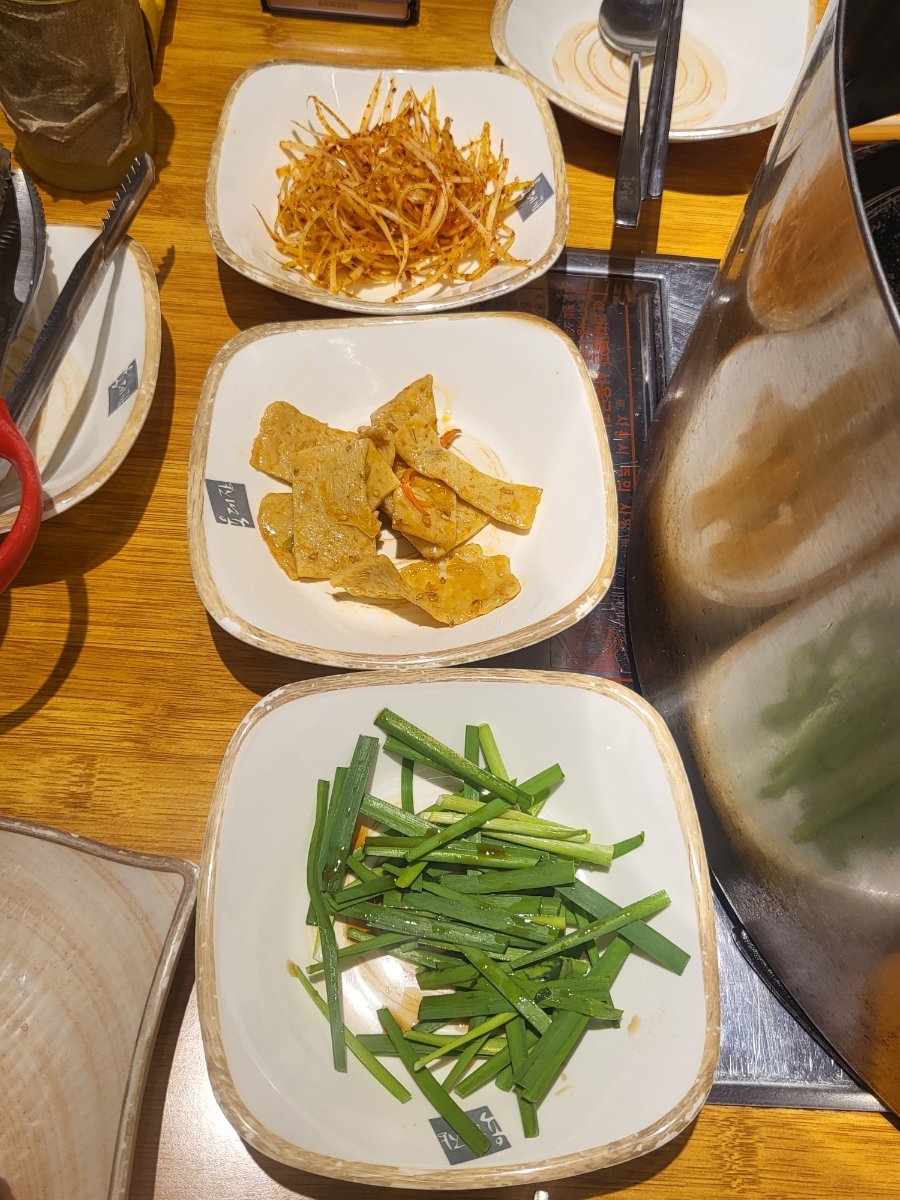 있었고 사이드메뉴로 전통솥칼국수, 전통 솥 김치알밥 볶음밥, 미나리, 두부가 준비되어 있네요