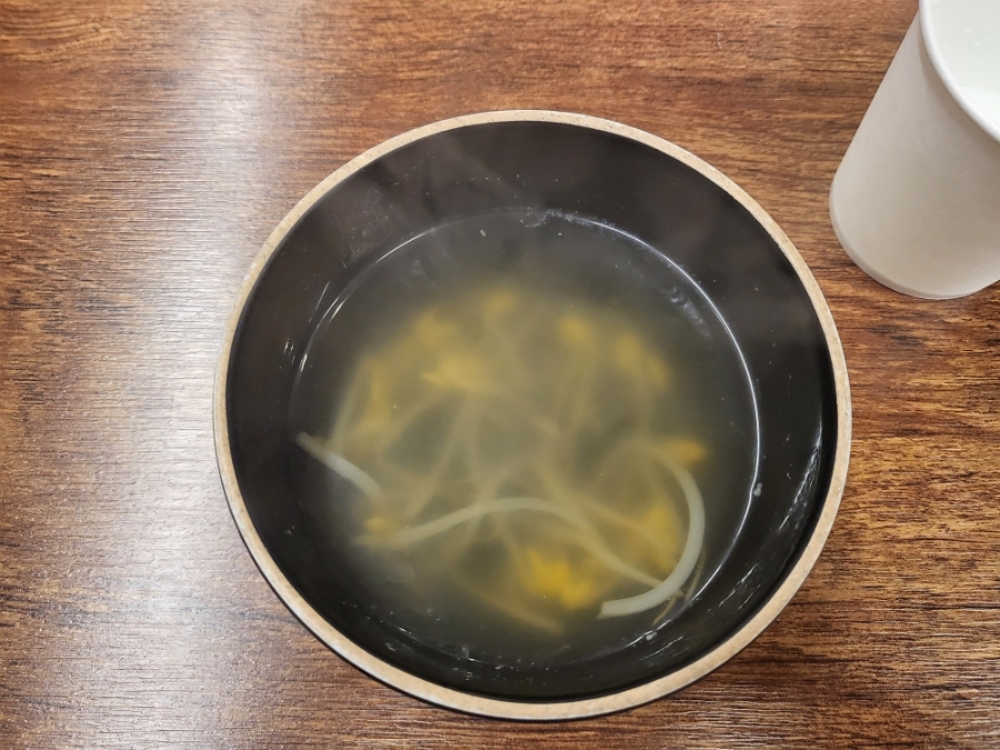 맨처음은 따듯한 콩나물국이 나와서