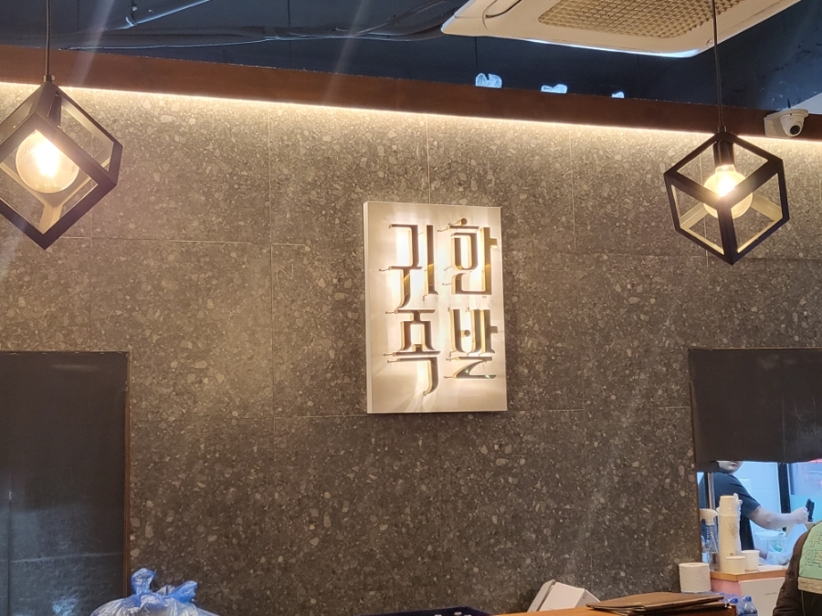 상호명 귀한족발인만큼 무언가 황금빛으로 빛나는 조명과