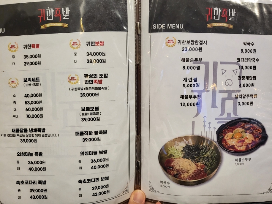 점심, 런치때 오시면 '귀한족발, 귀한보쌈 정식' 도 판매하니