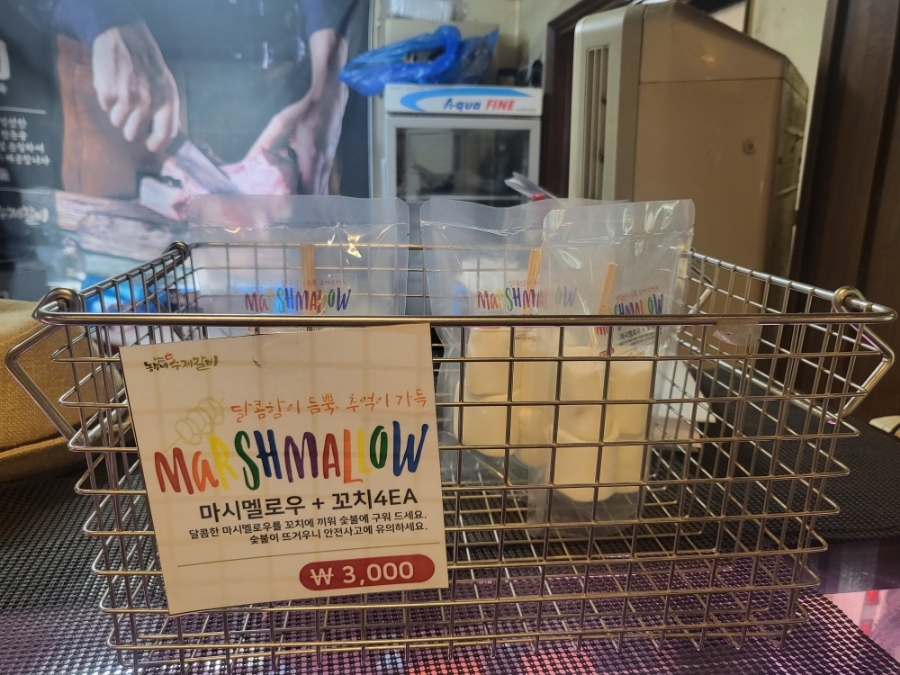 야외에서 드실경우 캠핑분위기를 한층더 업시키기위해 마시멜로우+꼬치4개를