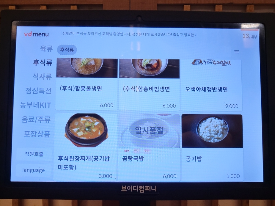 가장인기가 많은 음식은 역시 수제돼지양념갈비인것 같네요!