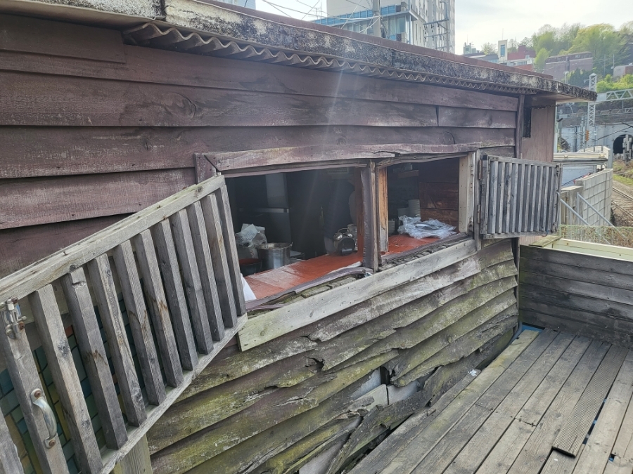나무판자 비주얼 금방이라도 무너져 내릴것같은 느낌이었어요