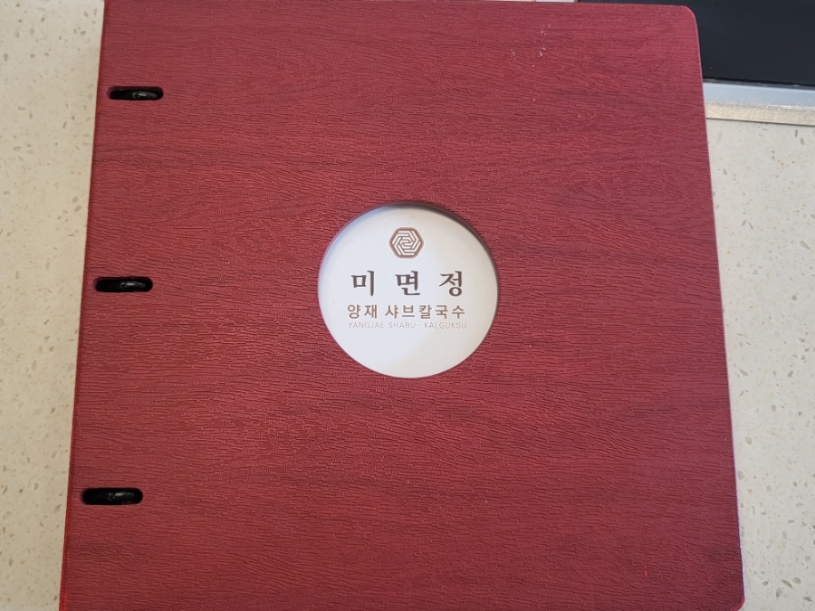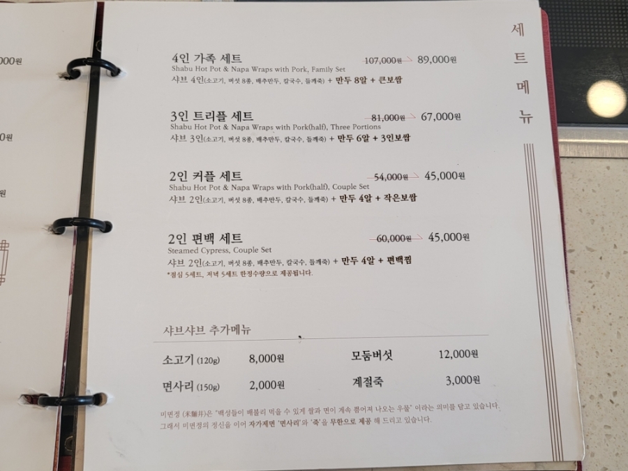 미면정양재칼국수샤브샤브 메뉴판 입니다