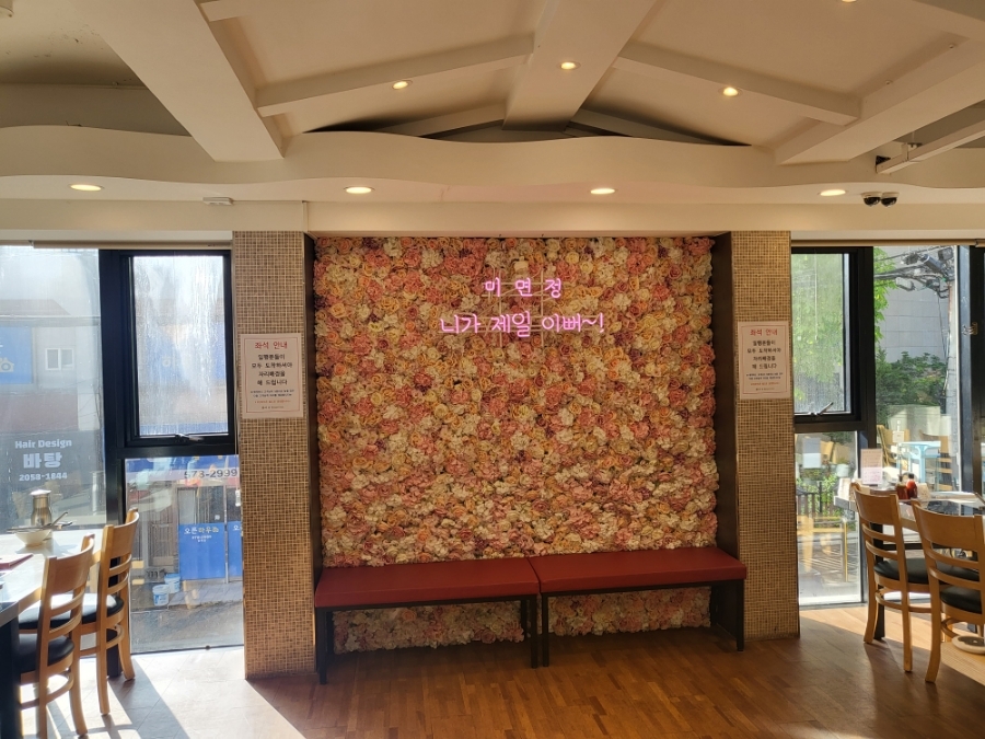 '니가 제일 이뻐~'라는 문구와 손님이 많을