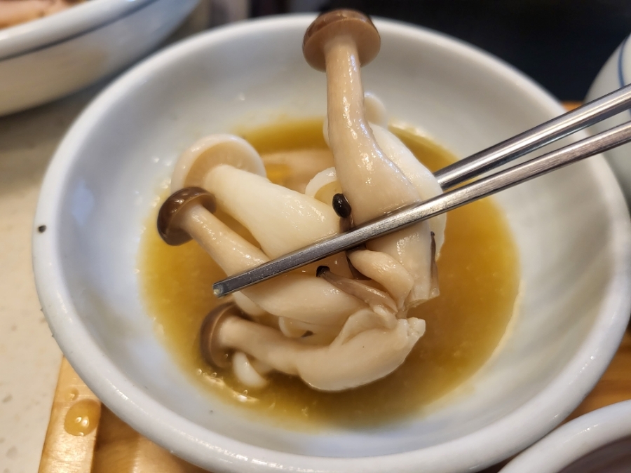 멸치베이스 육수에 버섯향과 소고기기름이 같이 들어가 감칠맛이 넘치는 육수가 되었고