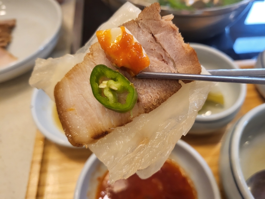 지방과 살코기부분이 적절하게 어울렸고요 그냥먹어도 백김치랑 싸서 먹어도, 언제먹어도 맛있는 보쌈