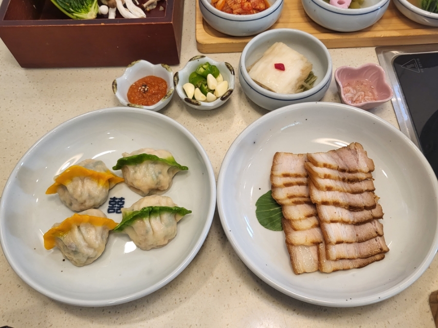 샤브샤브 먹으로 왔는데 보쌈에, 만두까지