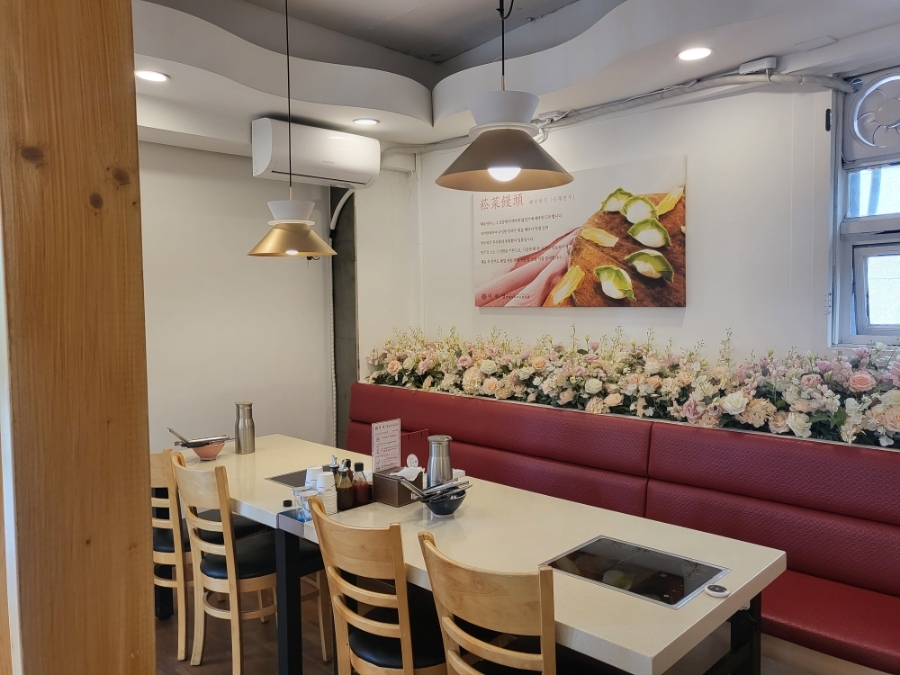 각 자리마다 이미 셋팅이 되있교 정리, 정돈되어 있다는 느낌을 주는 음식점이었어요
