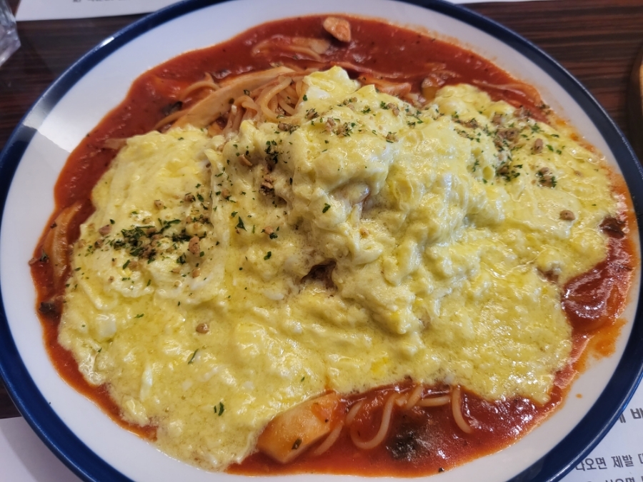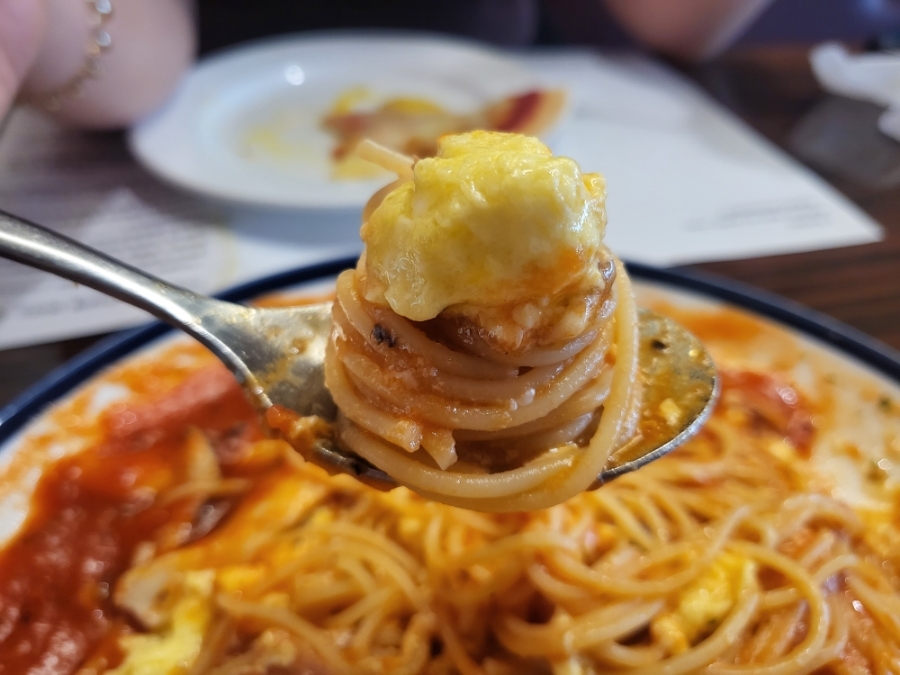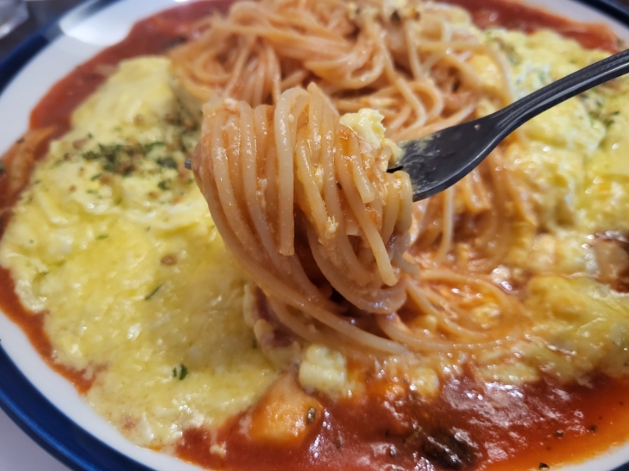 소스가 굉장히 넉넉하고 면양도 1.5인분으로 풍족한 파스타! 오믈렛에 크리미하고