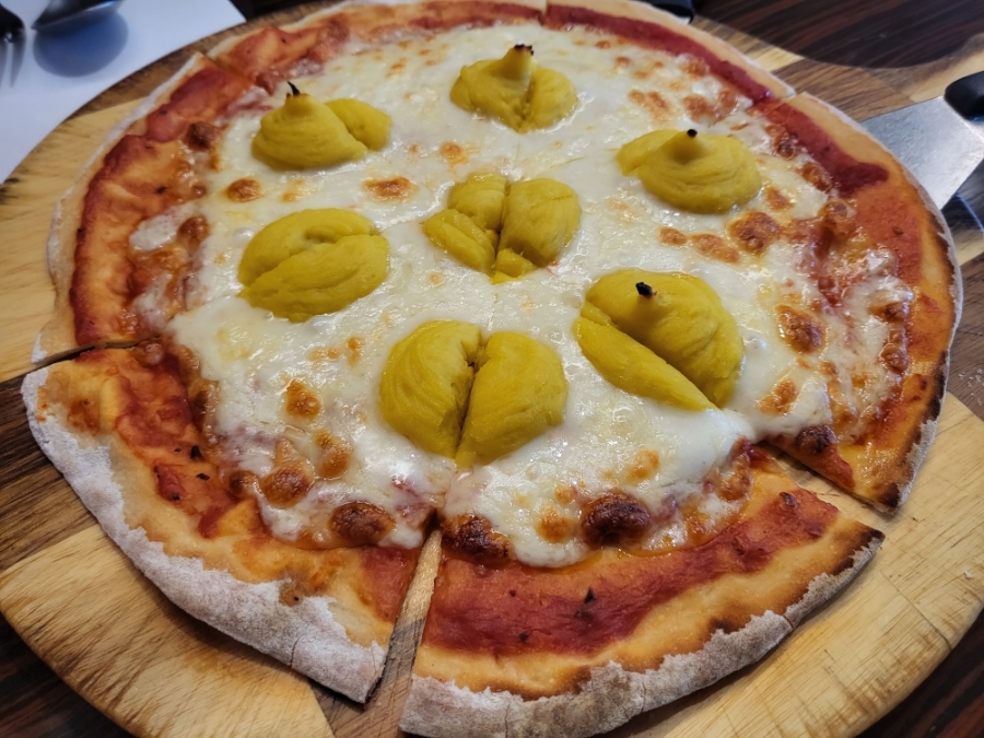 얇은 도우라 바삭한 과자같은 식감과 치즈와 고구마가 듬뿍 뿌려져 고소,달달고구마 맛이 강하게 났던 피자 뜨거울때 바로 먹는것보다 살짝 식혀서 드시면 치즈의 고소함을 좀더 잘느낄 수 있었어요