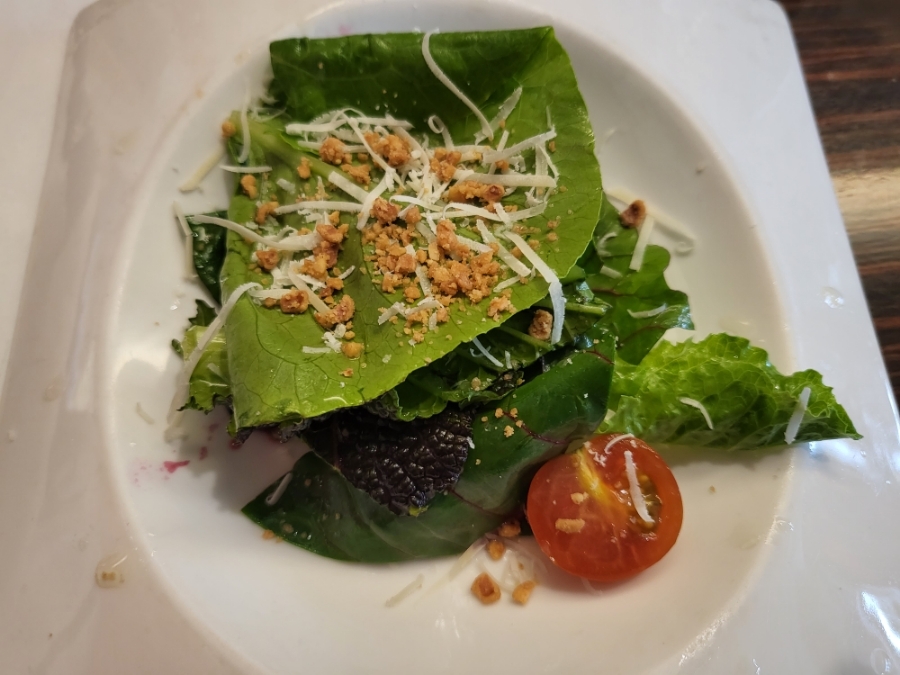 청겨자, 쌈채소등, 약간의 치즈, 방울토마토로 이루어진 작은 샐러드지만
