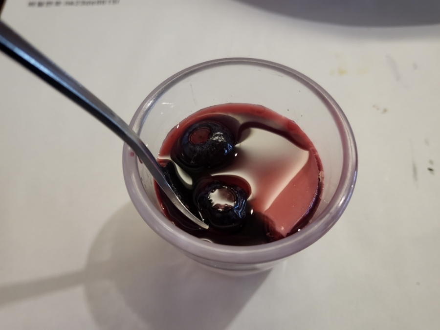 퍼지지않고 크림치즈같이 응고되고 진한 맛을 내는 푸딩이었어요 달콤한 블루베리랑