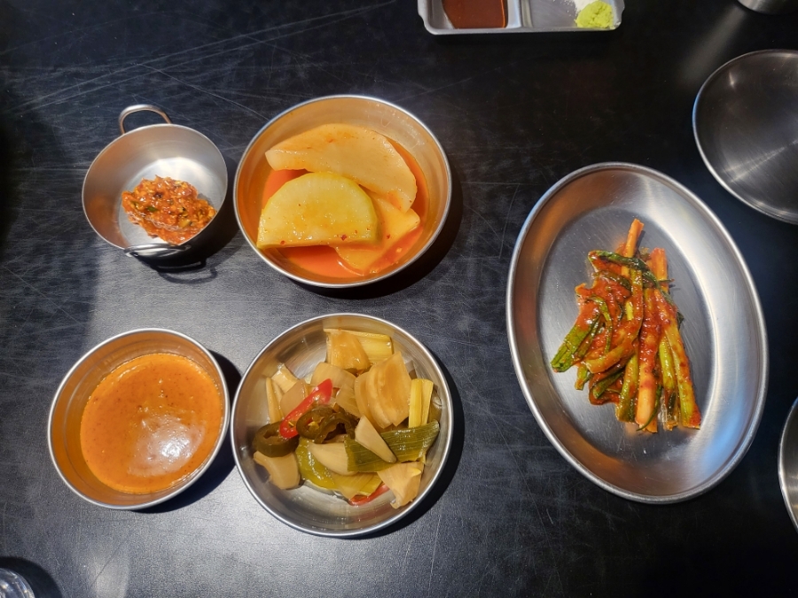 파김치, 깍두기, 샐러드무침도 준비된 모습