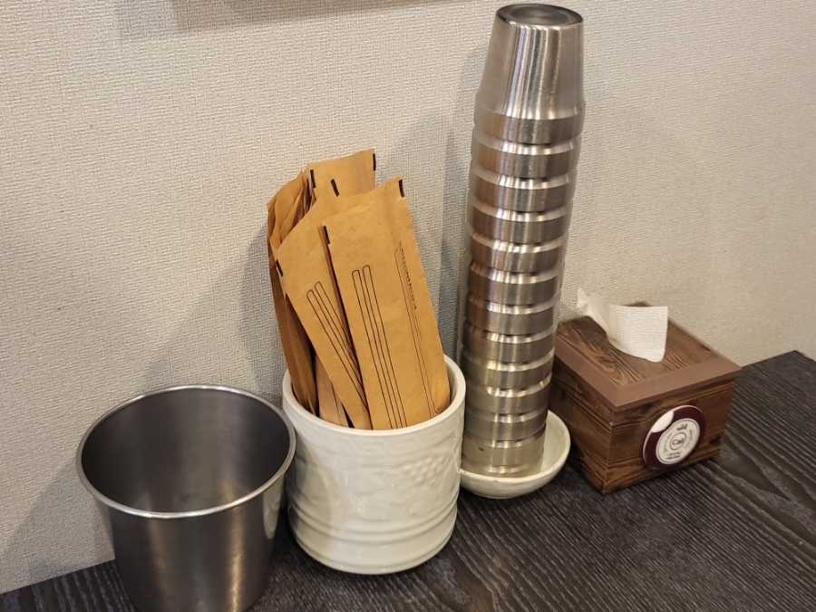 테이블에 수저와 컵은 셋팅되어 있네요