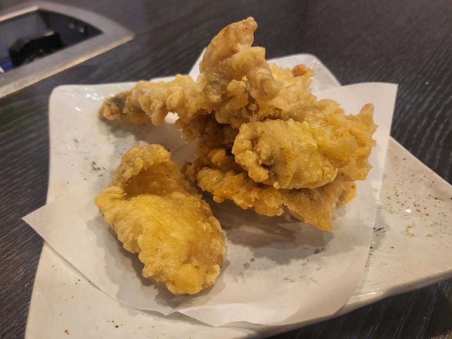 100개도 먹을 수 있을것 같은 맛! 안에 복어살이 실하게 들어가 있고 같이 나온 간장도 좋았지만 괜시리 소금을 찾게되더라구요 복어살이 무르지않고 탱탱한게 특징