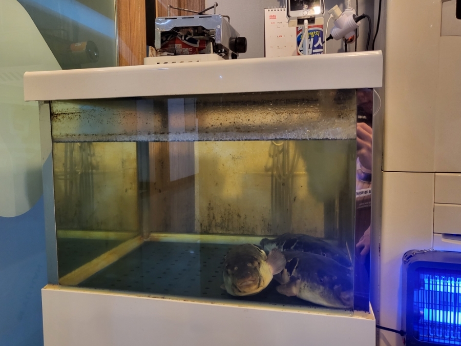 들어가면 수조에 들어있는 복어가 맞이해주는 모습