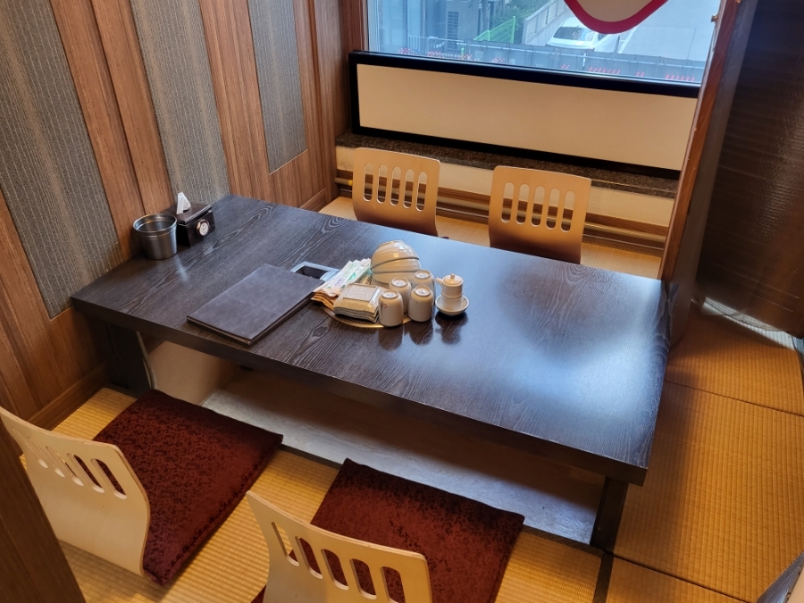 편하게 다리를 아래로 향한채 식사를 즐길 수 있는 프라이빗한 공간으로 구성