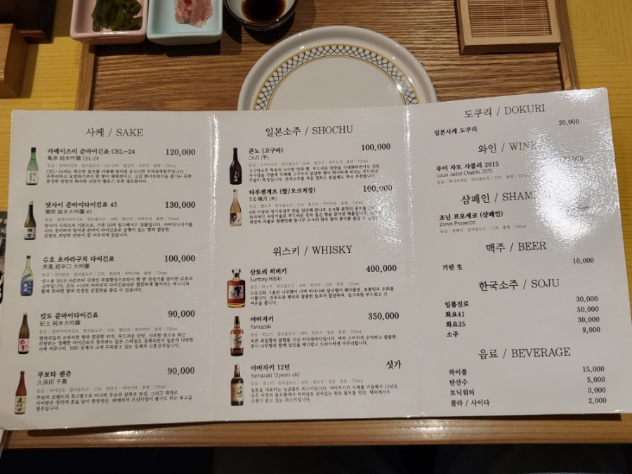 런치(점심)/디너(저녁) 모두 운영하는 서울 스시오마카세 음식점이고 주류메뉴판도