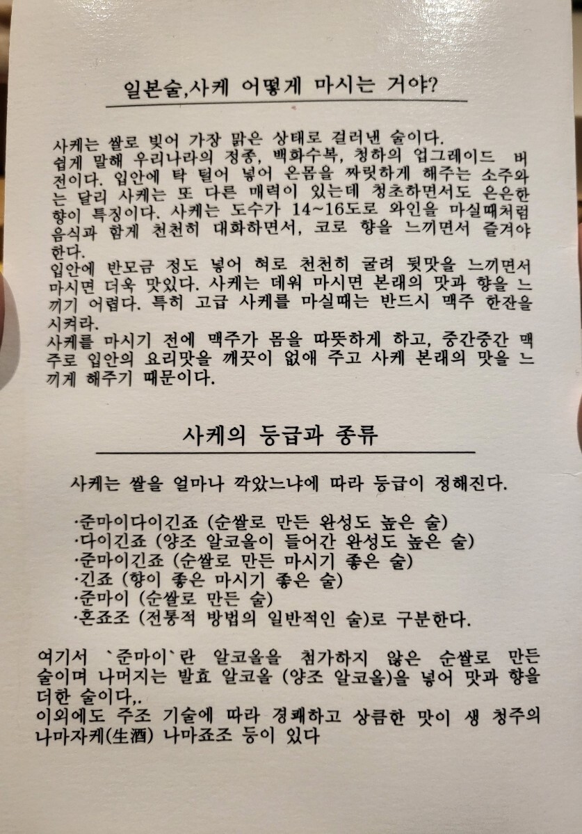 '일본술 사케는 어떻게 마시는가''사케의등급과 종류' 설명이 나와있는데