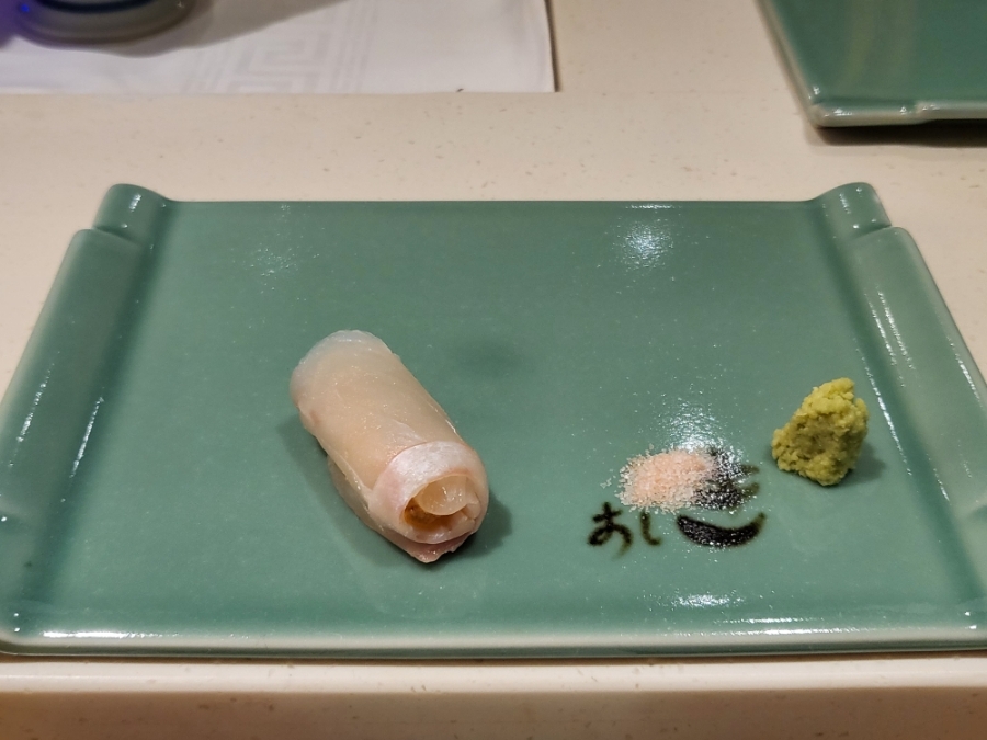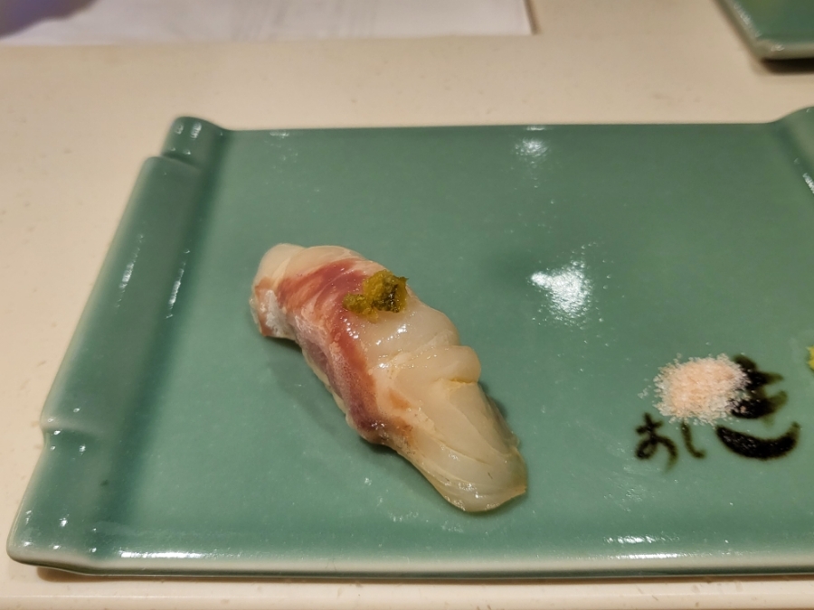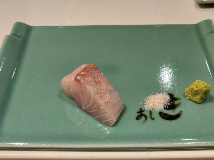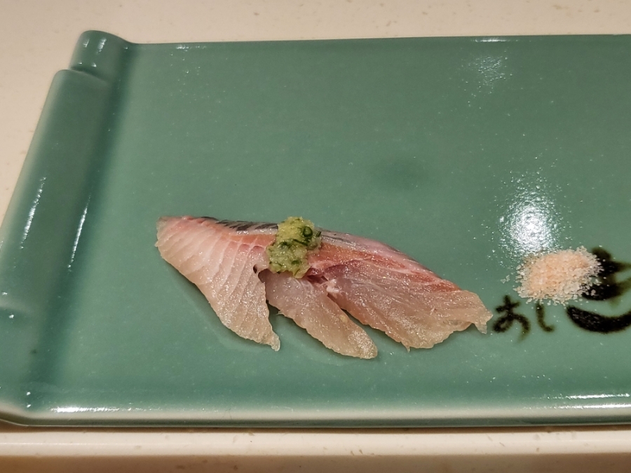 17. 줄무늬전갱이(시마아지) 초밥 - 기름기가 살짝 부족하다 느낌 샤리(밥)맛이 더 강하게 났던 초밥