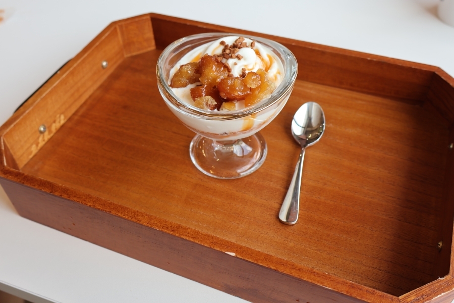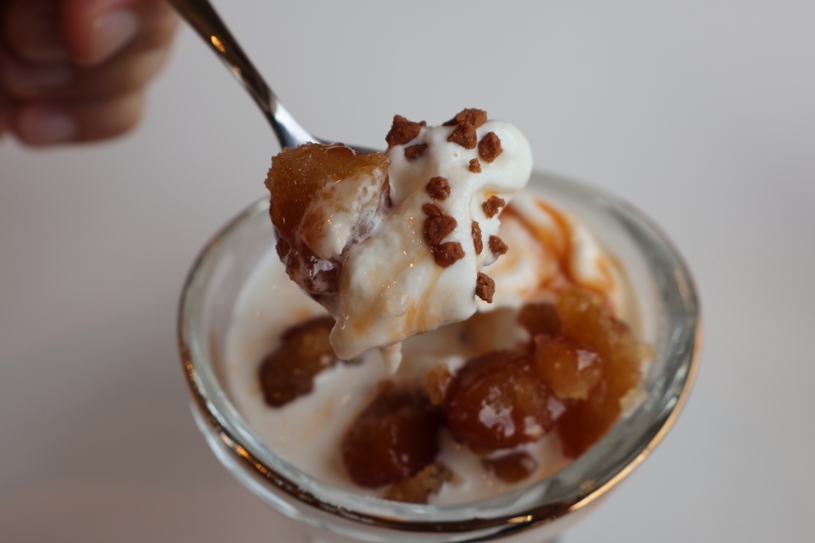 디저트 장인약과 자체가 단맛이 강하지 않아 아이스크림맛이 먼저 들어오고 나중에 약과의 꾸덕함이 들어왔어요, 제가 먹었을때는 약과가 엄청나게 단단해서 이가 약하신분들 정말 주의를 하셔야될것 같아요 양은 적은편이며 약과자체로 먹었을때가 더 좋았던것 같아요