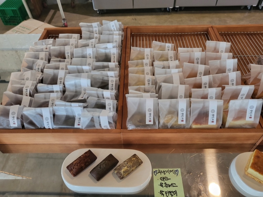 약과외에도 약포가토, 약과빵, 휘낭시에, 버터바등 다양한 디저트가 구비되어 있는 모습