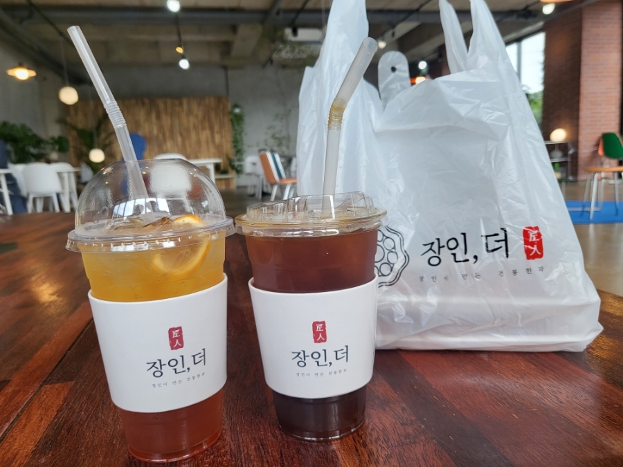 1인1메뉴 이상 커피를 주문해야 하고 한사람당 약과는 2개까지만 구매가능하네요
