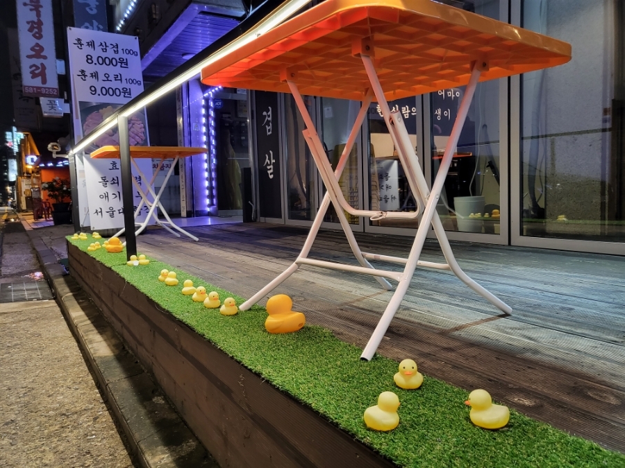 외관으로는 '프리미엄 훈제오리 전문점'이라고 적혀있지만 저녁에는 심야포차에