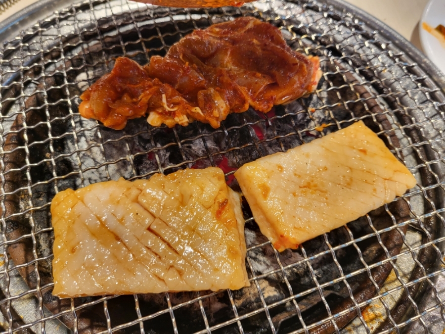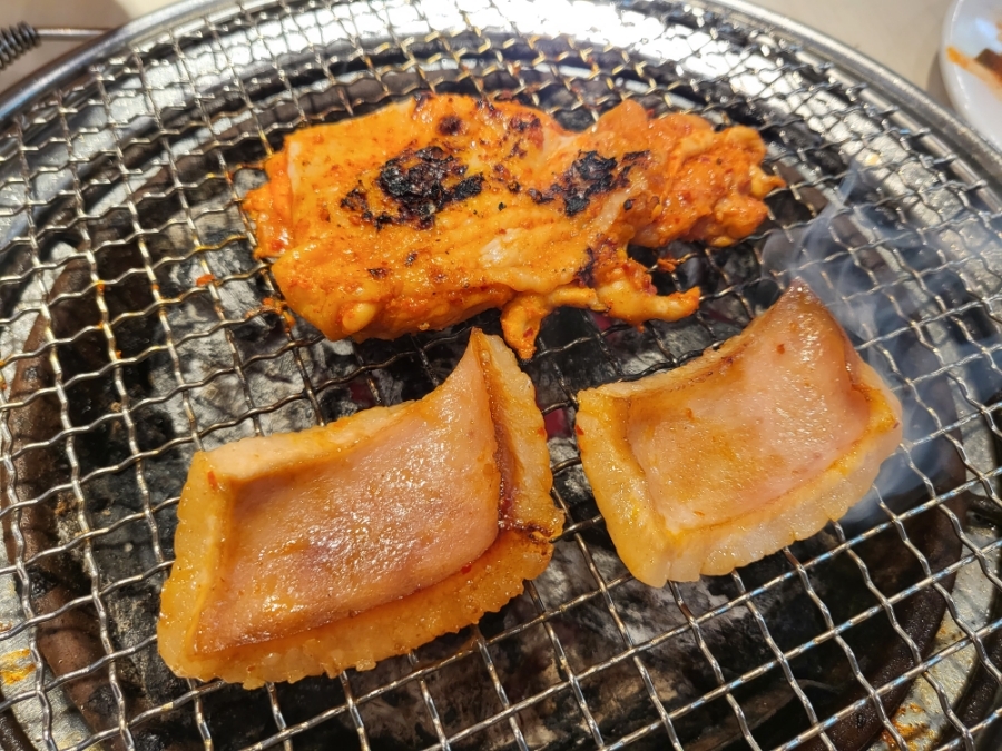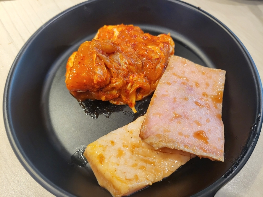 두꺼운거 보이시나요 거기다 세세한 칼집까지 잘나있고 한입 베면 서걱, 쫀득한 식감과 더불어 달달한 간장양념맛까지 전체적으로 밸런스가 잘잡혀있던 돼지껍데기 모든고기 부위가 다 훌륭하네요